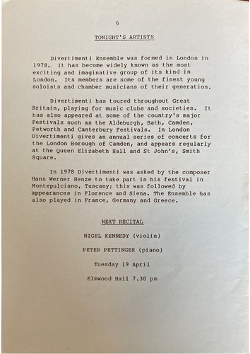 In 1978 Divertimenti was asked by the composer