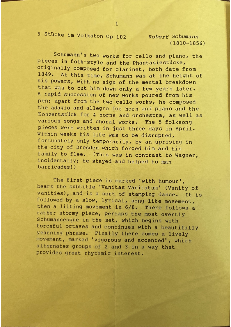 Schumann's two works for cello and piano, the