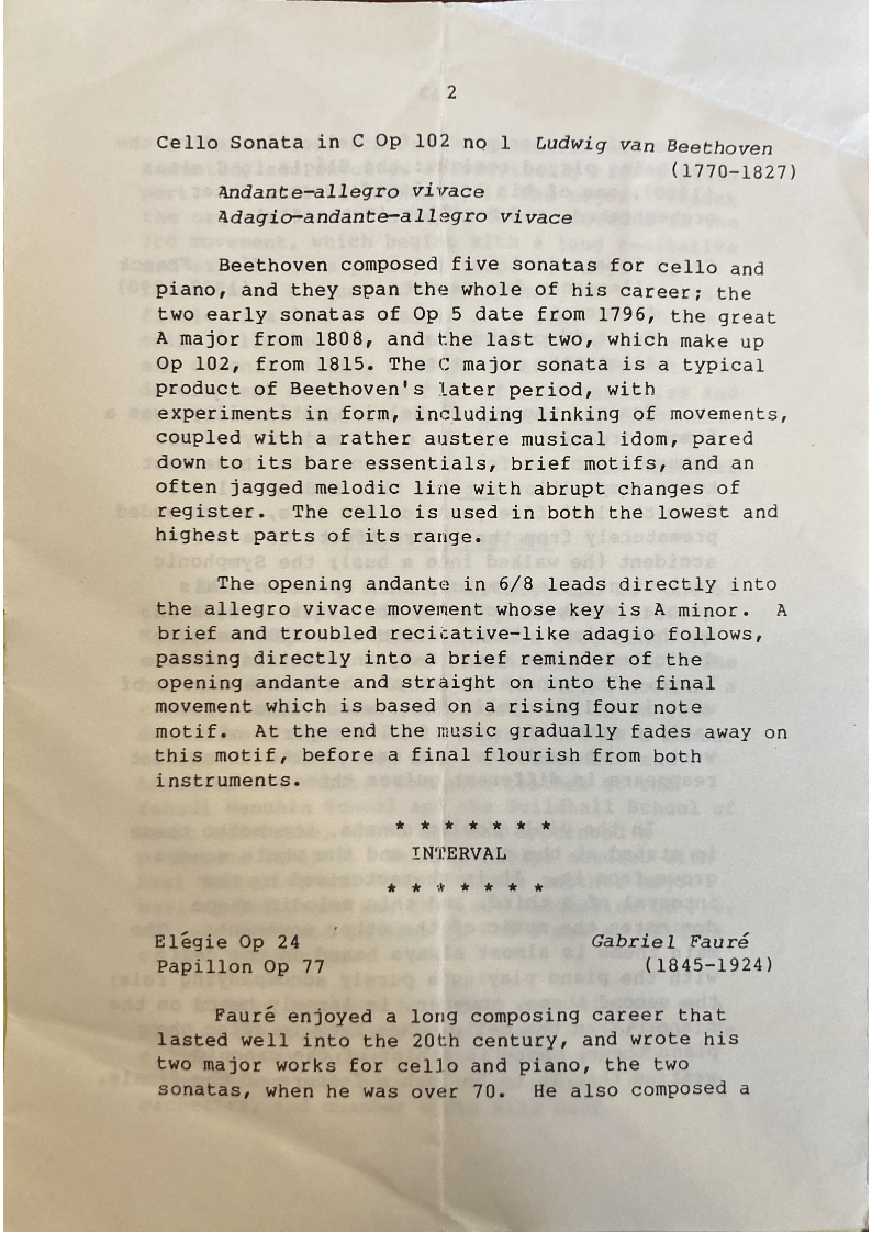 Cello Sonata in C Op 102 no 1 Ludwig van Beethoven