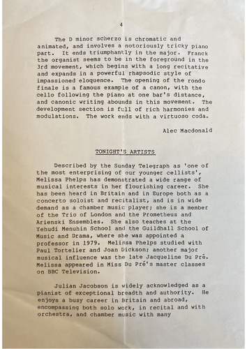 Melissa appeared in Miss Du Pré's master classes