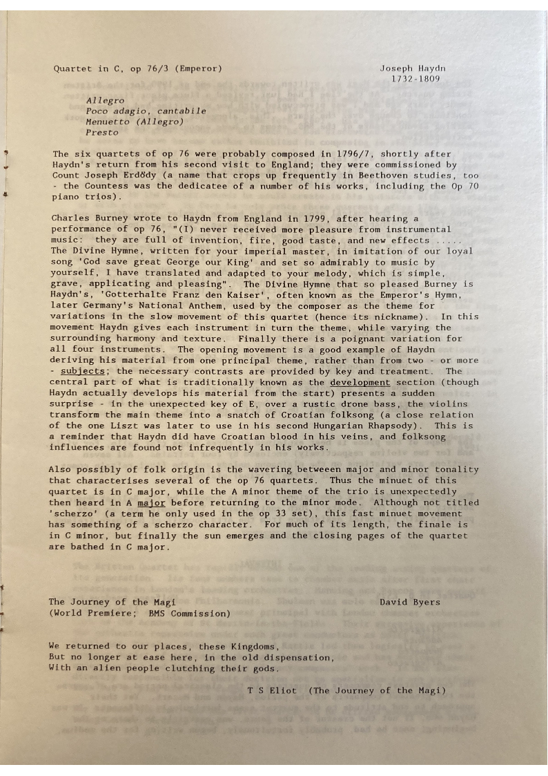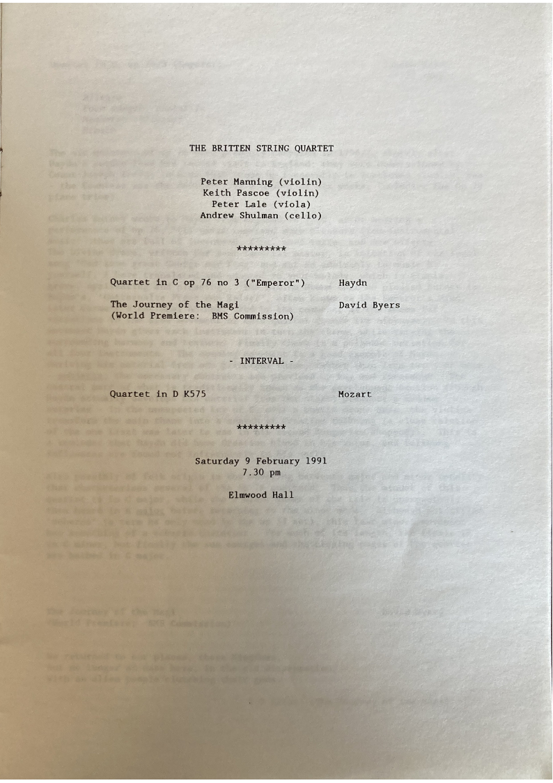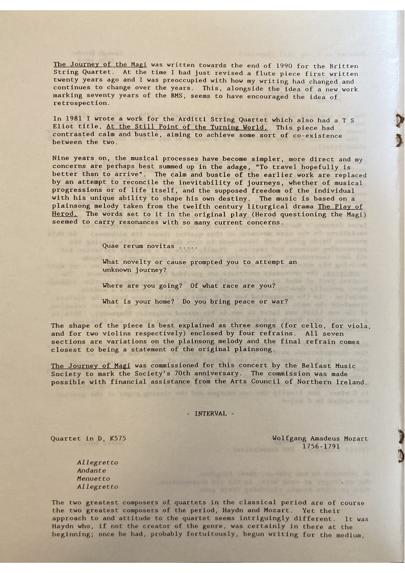 The Journey of the Magi was written towards the end of 1990 for the Britten