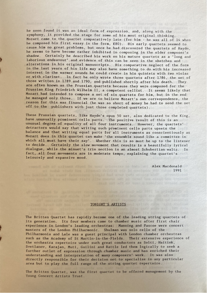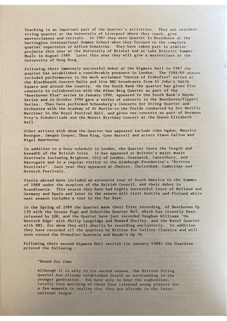 Series and in October 1990 gave a series of concerts in the Beethoven/Tippett