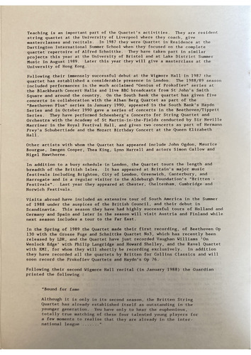 masterclasses and recitals. In 1987 they were Quartet in Residence at the