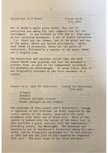 Variations in F Minor rents, Haydn