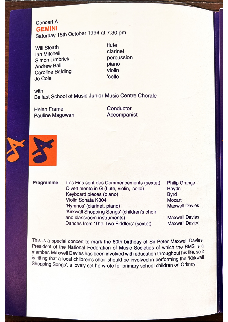 This is a special concert to mark the 60th birthday of Sir Peter Maxwell Davies,