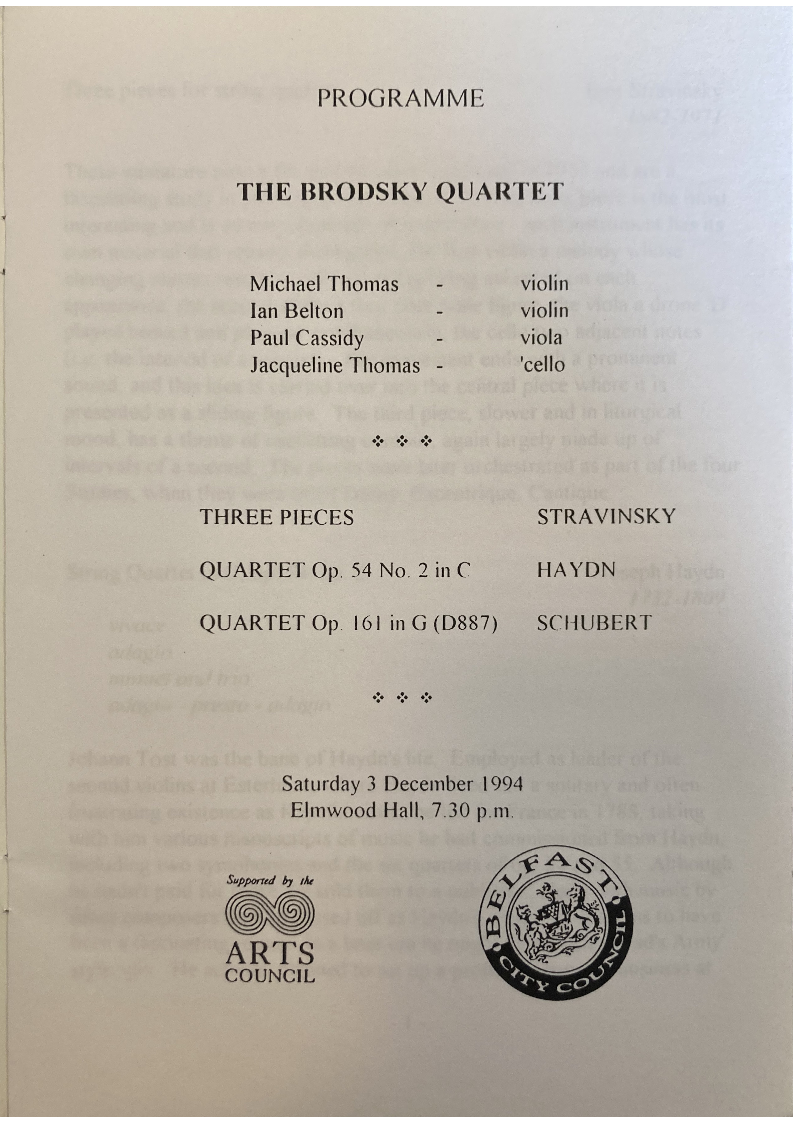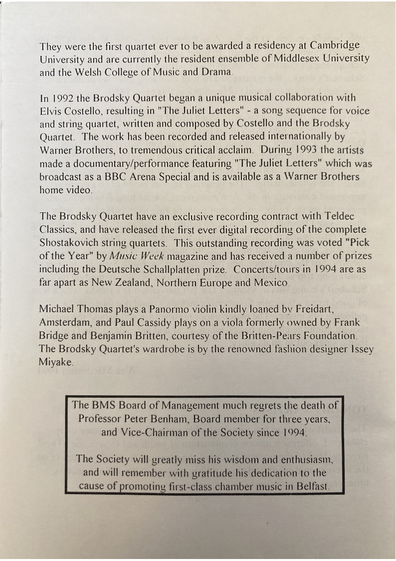 cause of promoting first-class chamber music in Belfast.