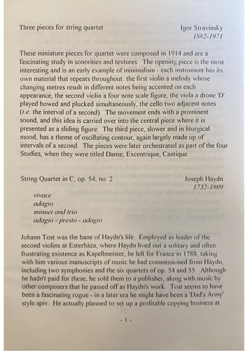 appearance, the second violin a four note scale figure, the viola a drone 'D'