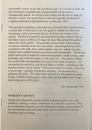 concert the following year with Schubert himself playing the viola. At his