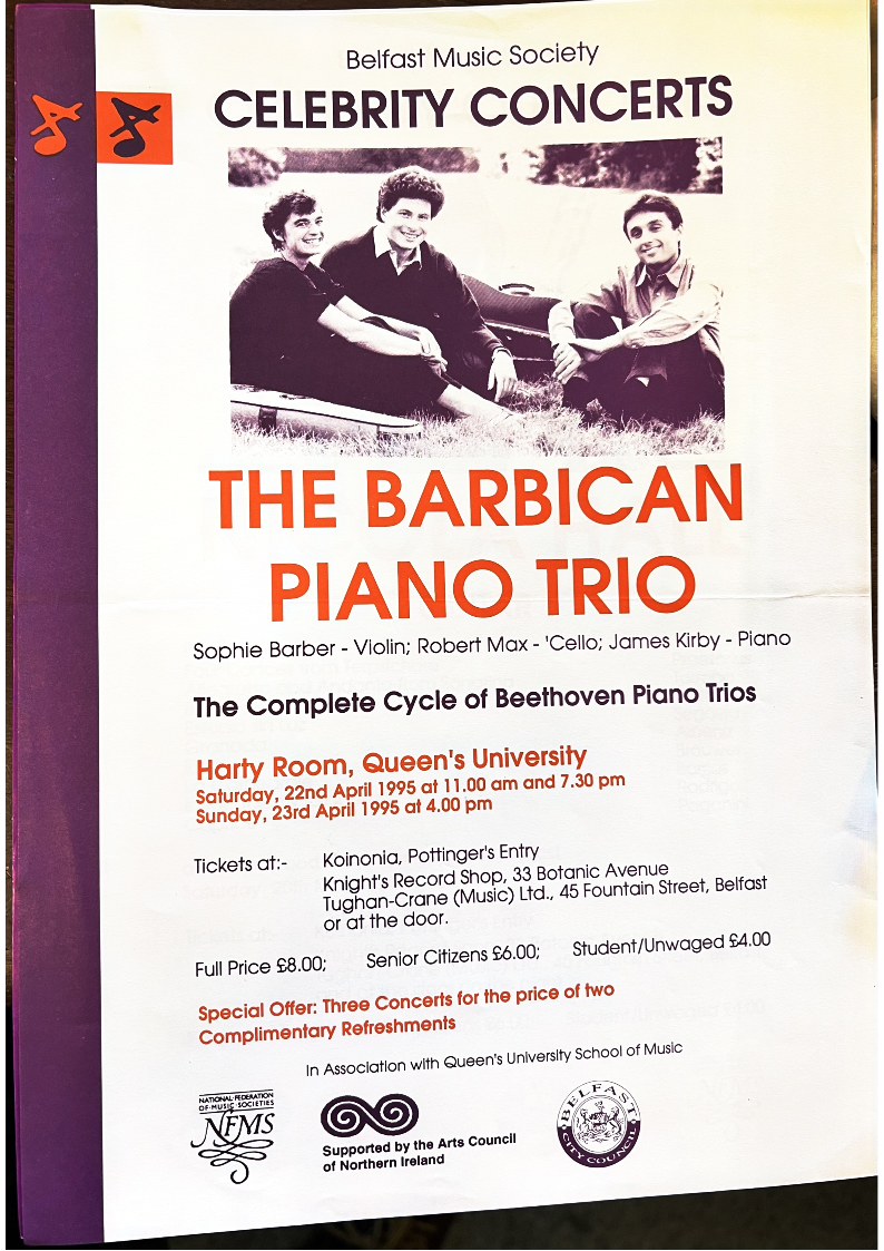 Sophie Barber - Violin; Robert Max - 'Cello; James Kirby - Piano