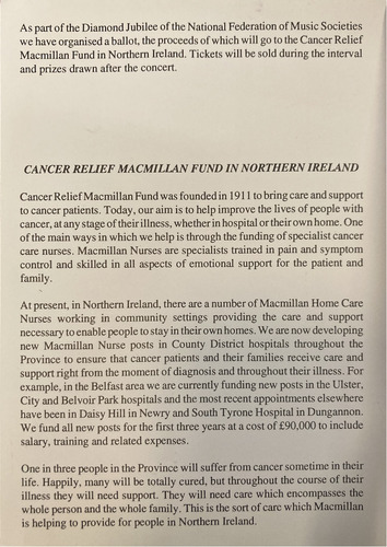 Macmillan Fund in Northern Ireland. Tickets will be sold during the interval