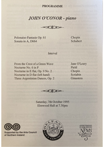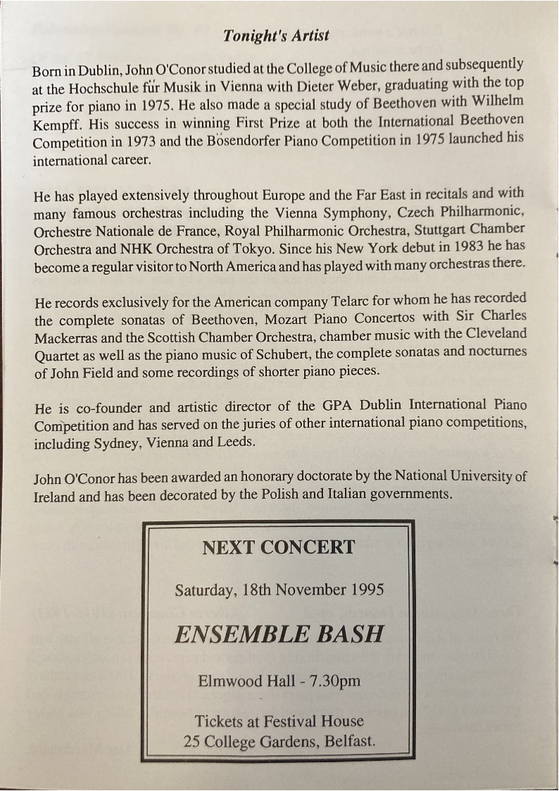 Born in Dublin, John O'Conor studied at the College of Music there and subsequently