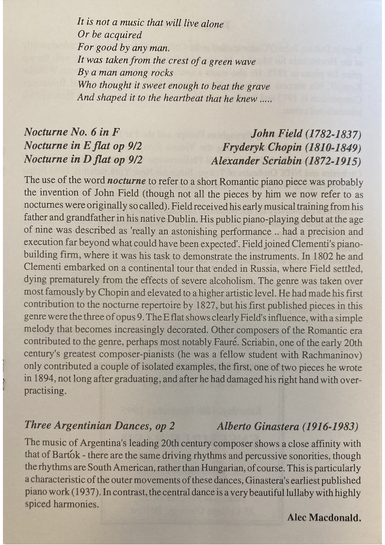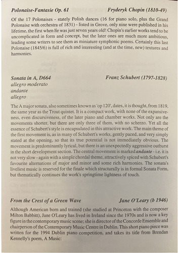 chairperson of the Contemporary Music Centre in Dublin. This short piano piece was