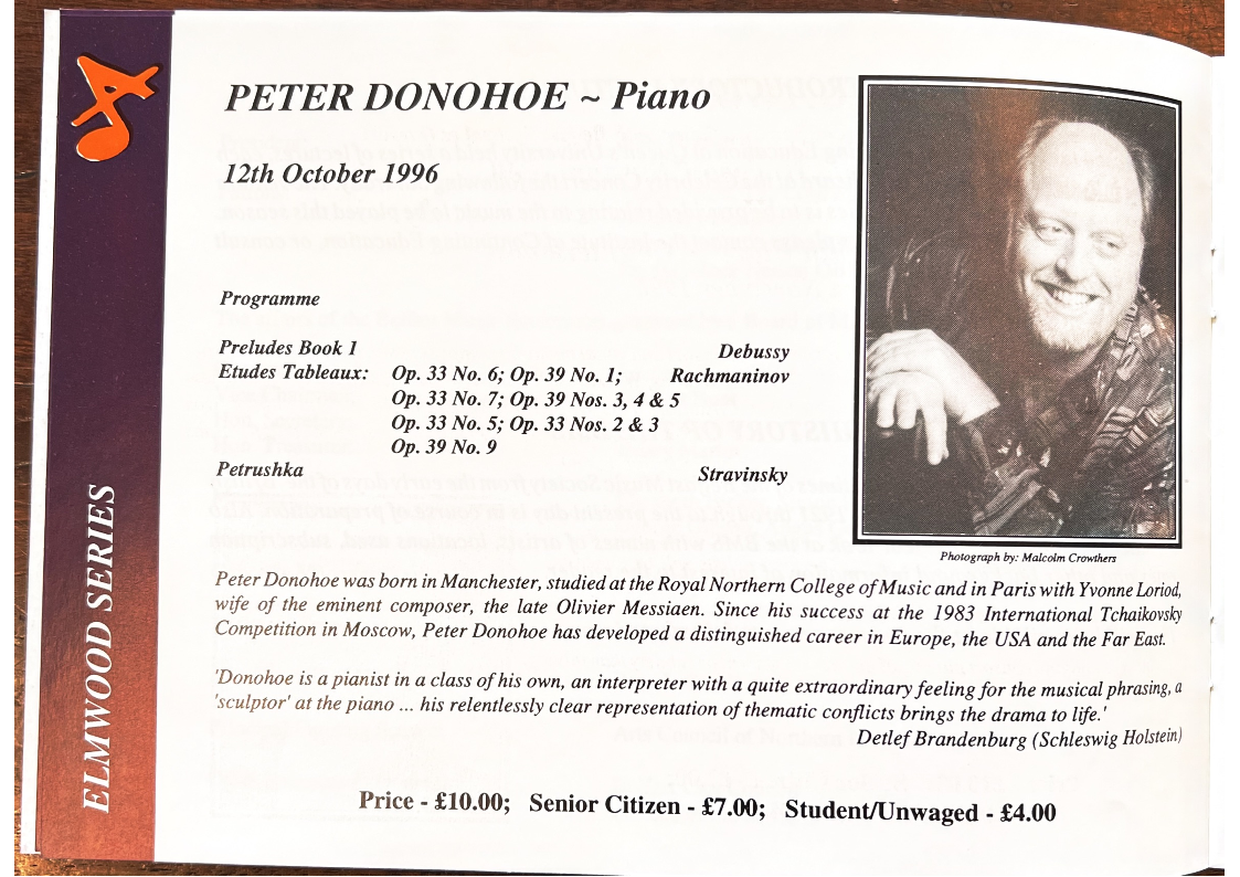 Competition in Moscow, Peter Donohoe has developed a distinguished career in Europe, the USA and the Far East.