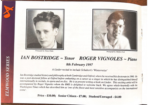 Ian Bostridge accompanied by Roger Vignoles.