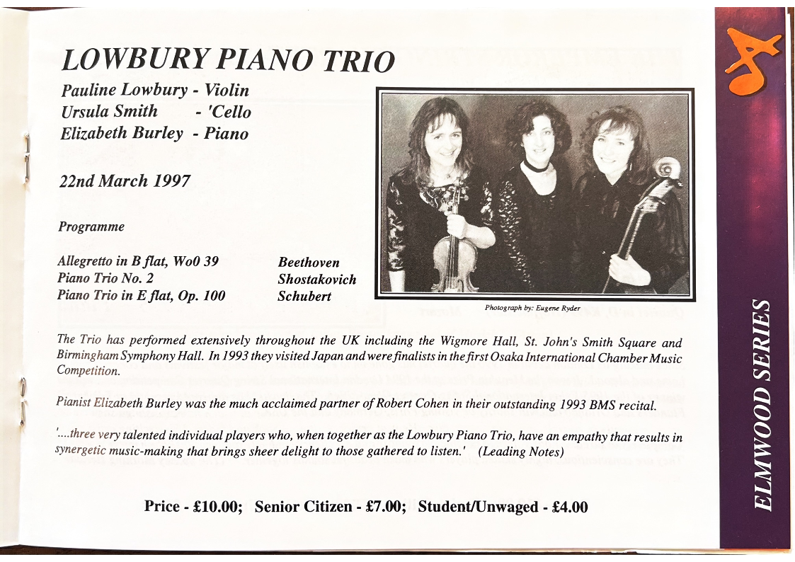 A deduction of £5 may be made if booking all five concerts in the Elmwood