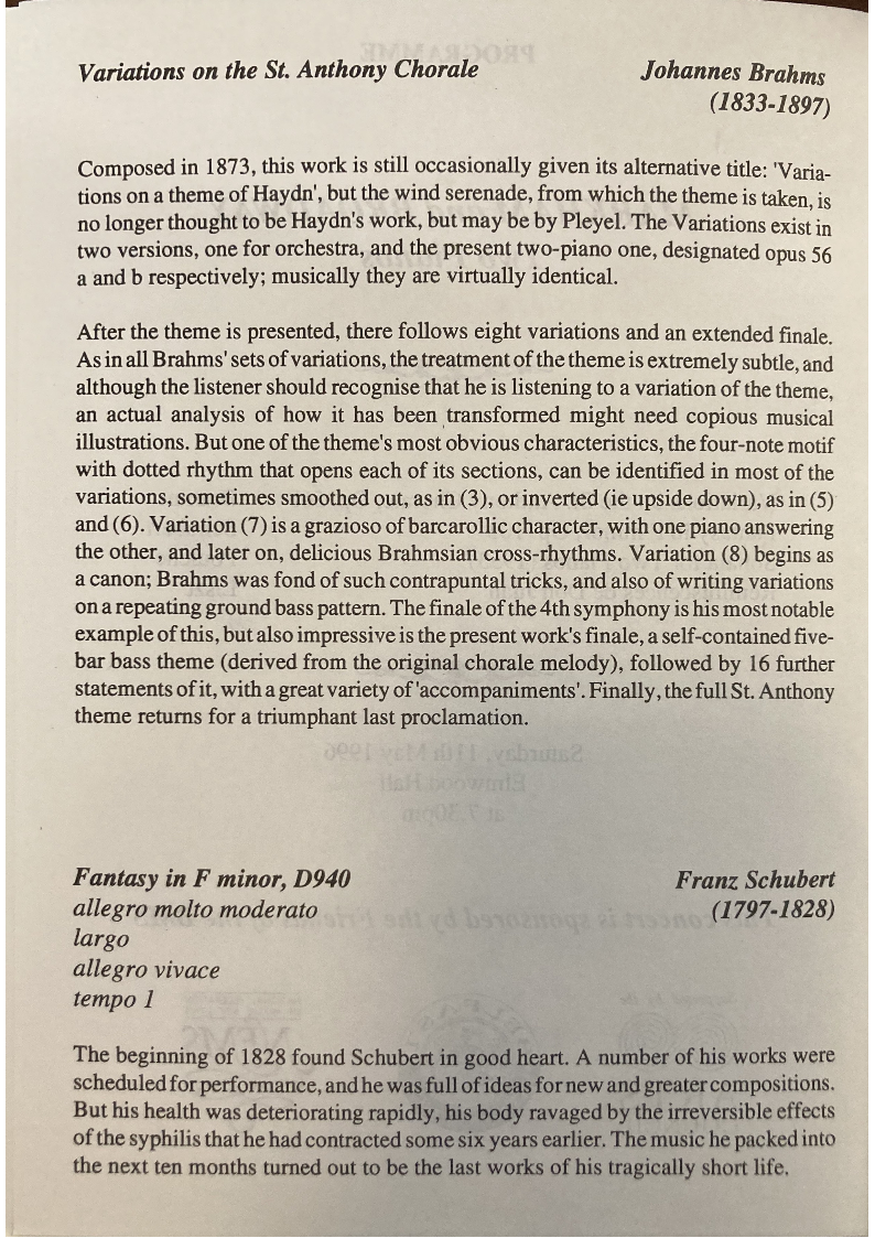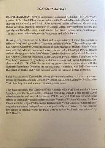 magazine acclaimed their performance as 'profoundly impressive'. The duo-pianists'