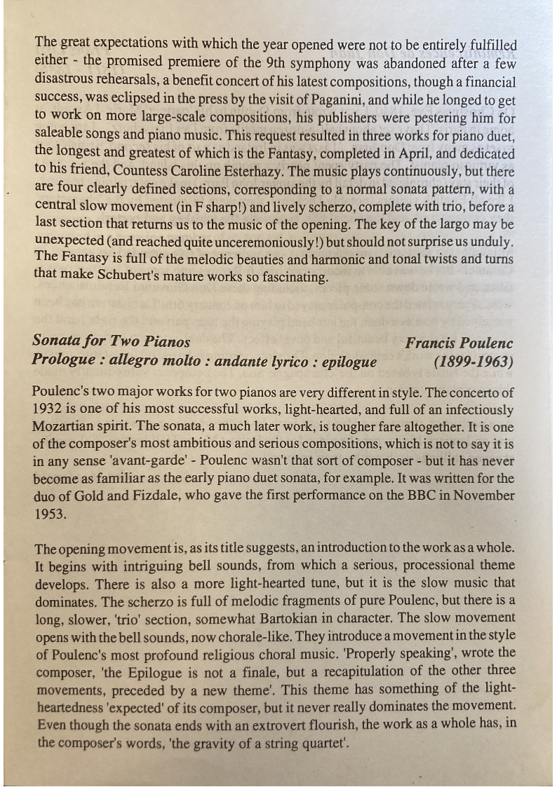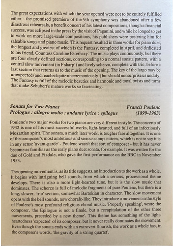 Poulenc's two major works for two pianos are very different in style. The concerto of