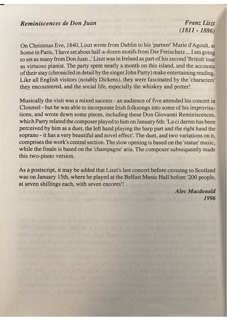 to set as many from Don Juan... Liszt was in Ireland as part of his second 'British' tour