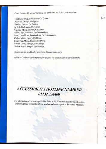 ment to the Waterfront Hall Box Office, 2 Lanyon Place, Belfast, BT1 3LP. Please make