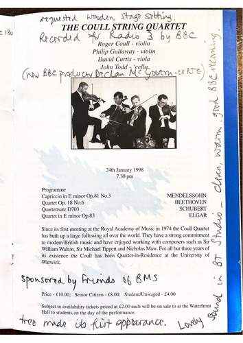 Since its first meeting at the Royal Academy of Music in 1974 the Coull Quartet