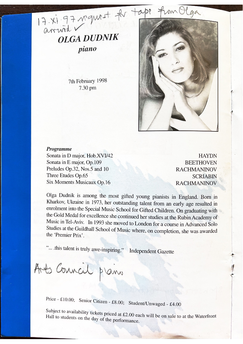 Olga Dudnik is among the most gifted young pianists in England. Born in