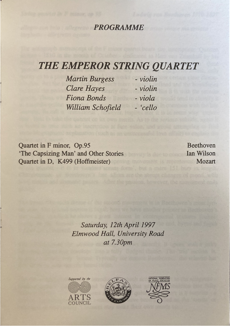 by the Emperor Quartet, who gave the British premiere at the Cheltenham Festival