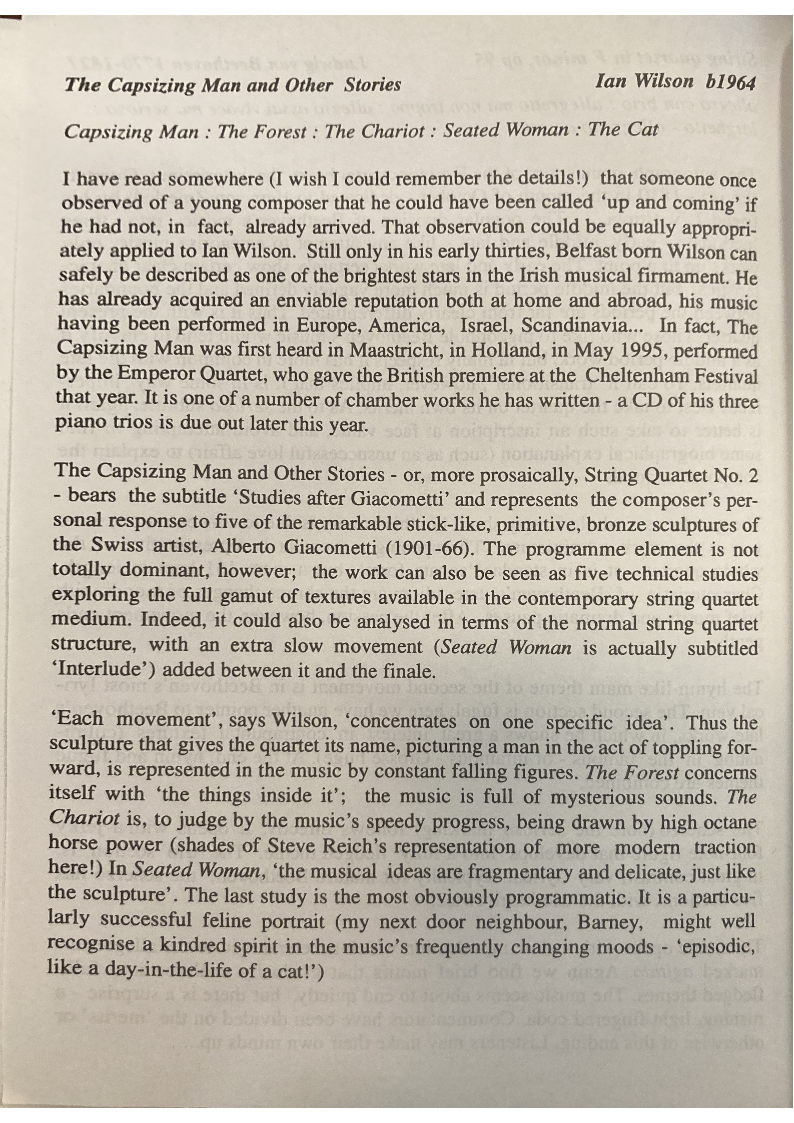 The Capsizing Man and Other Stories - or, more prosaically, String Quartet No. 2