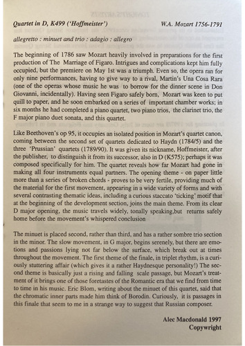 Quartet in D, K499 (Hoffmeister)
