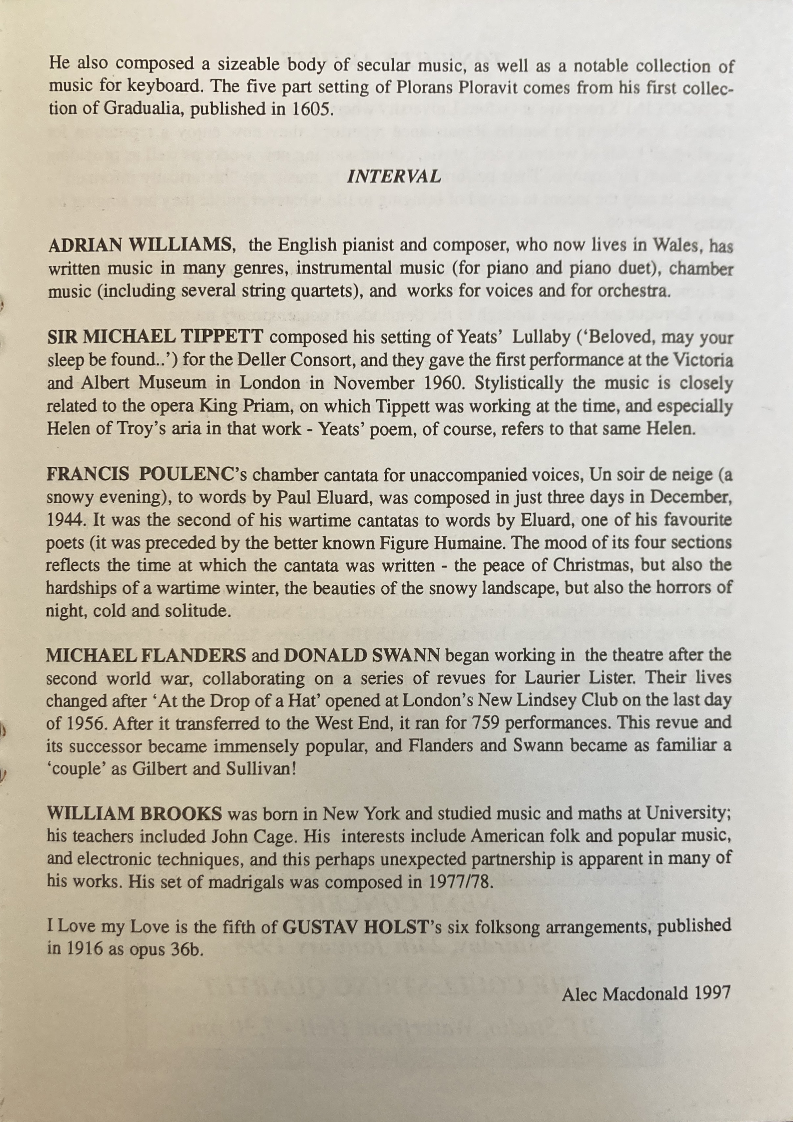 sleep be found..') for the Deller Consort, and they gave the first performance at the Victoria