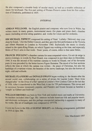 I Love my Love is the fifth of GUSTAV HOLST's six folksong arrangements, published