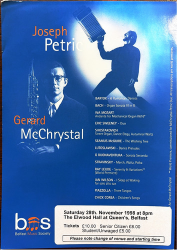 Arr Gerard McChrystal World Premiere, commissioned for McChrystal-Petric Duo. All transcriptions are world premieres.