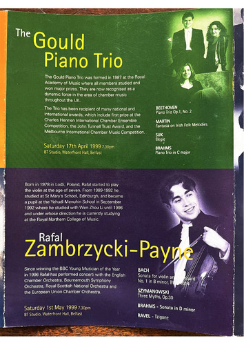 Saturday 9th January 1999 7.30pm Harty Room, Queen's University, Belfast