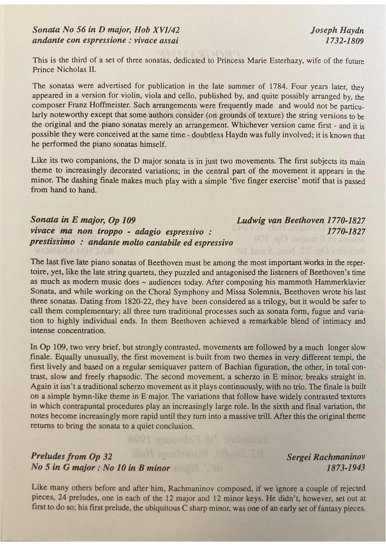 (1989), the Arianne Katz Piano Competition (1st Prize) (1991), the BBC Radio 3 Competition (1994)