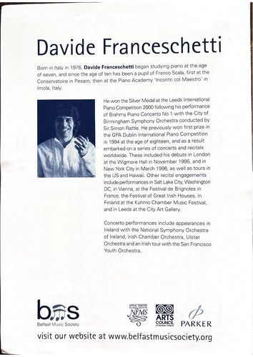 Born in Italy in 1976, Davide Franceschetti began studying piano at the age