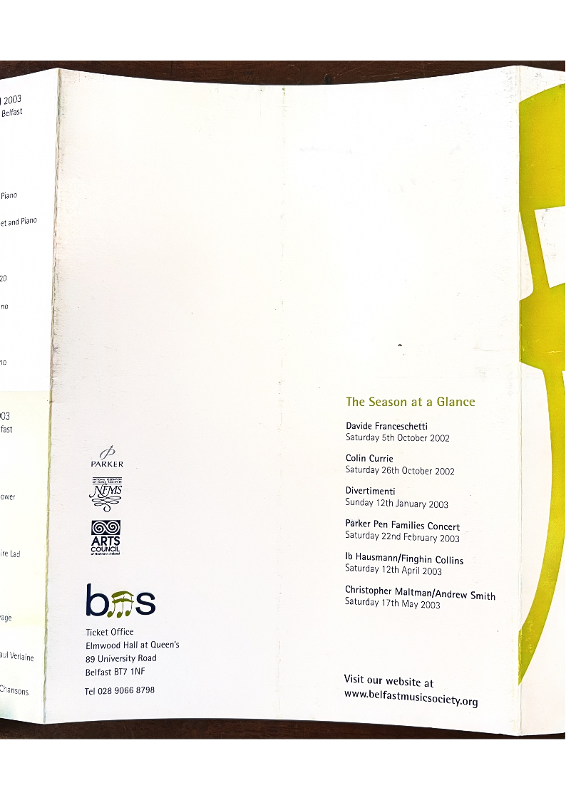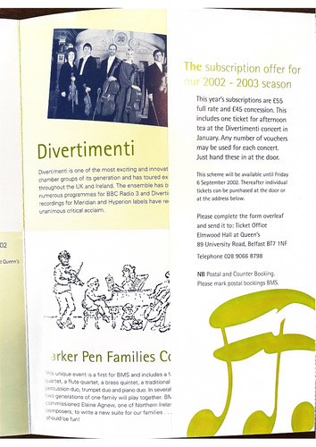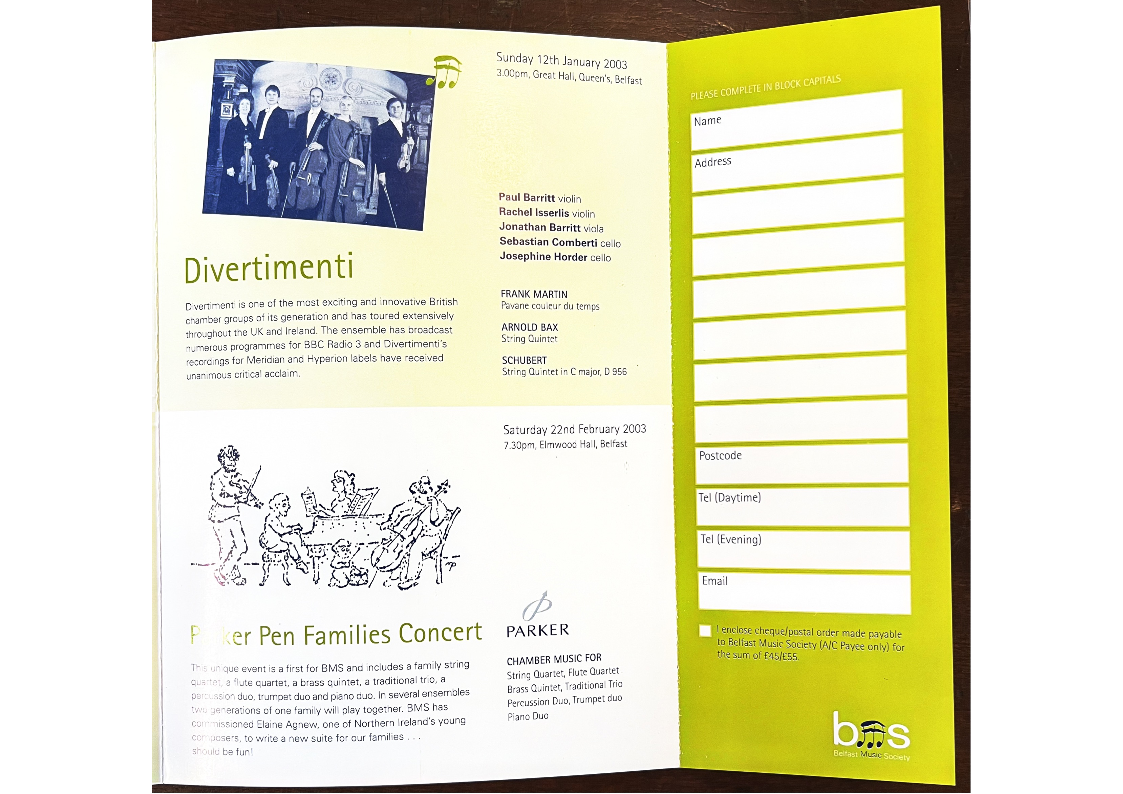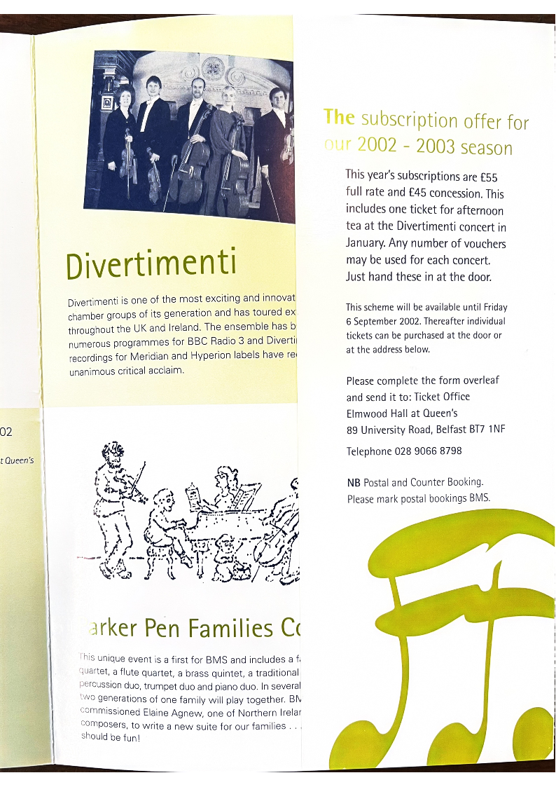 to Relfast Music Society (A/C Payee only) for