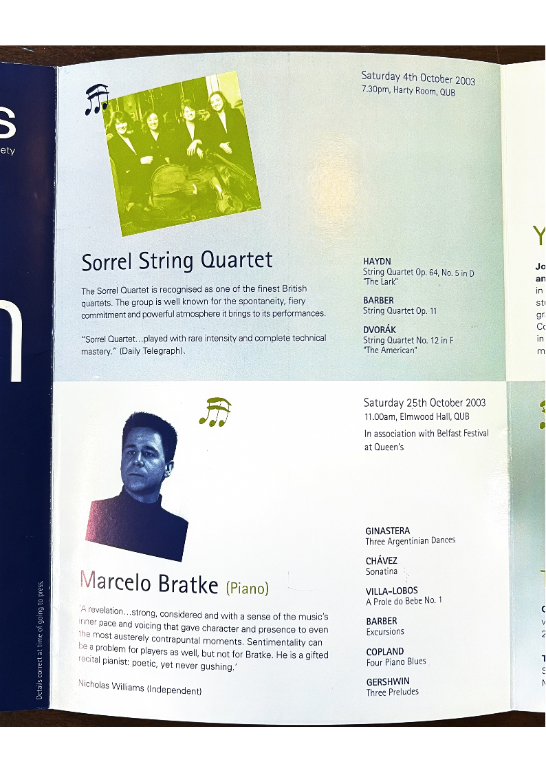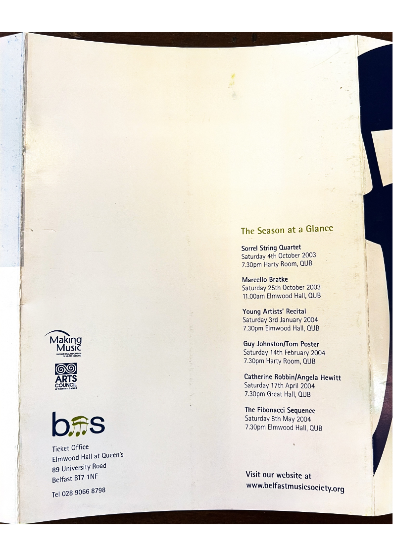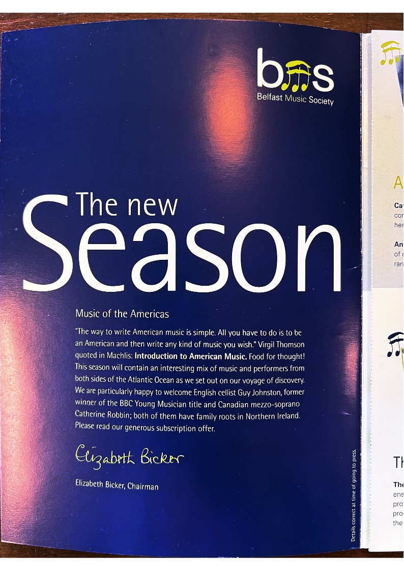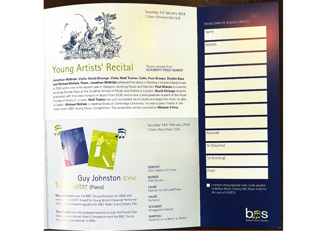 to Belfast Music Society (A/C Payee only) for