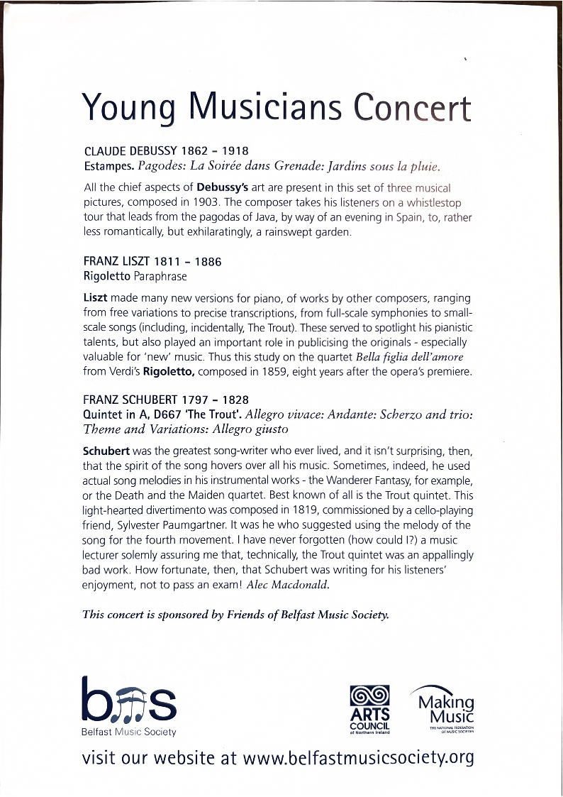 This concert is sponsored by Friends of Belfast Music Society.