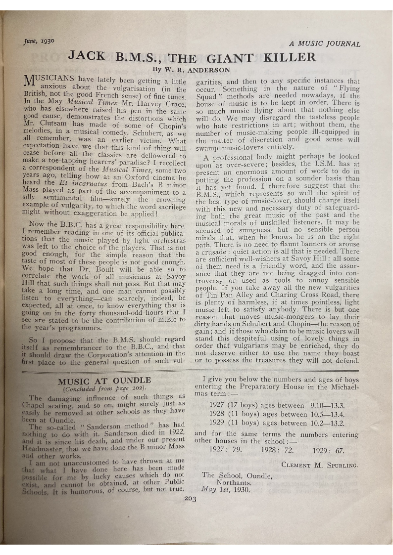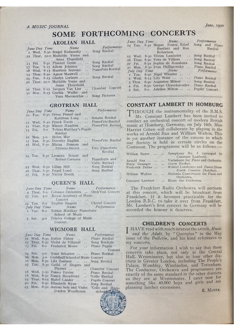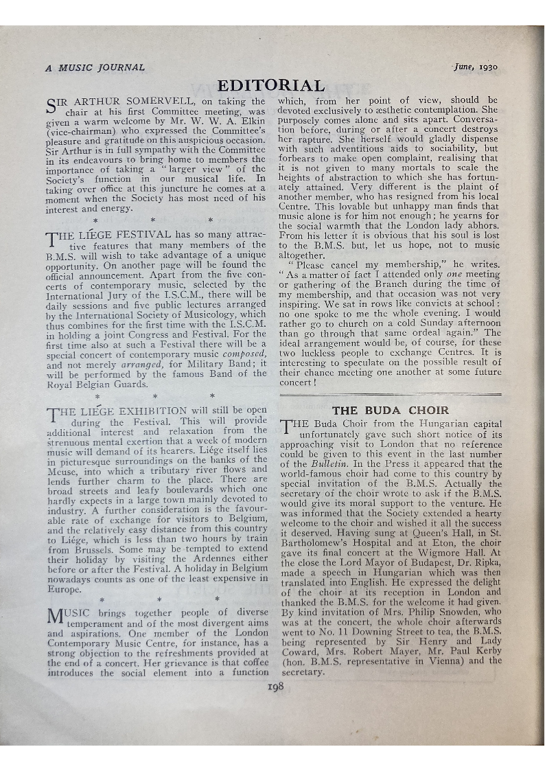 lecture on Characteristics of British Music. He