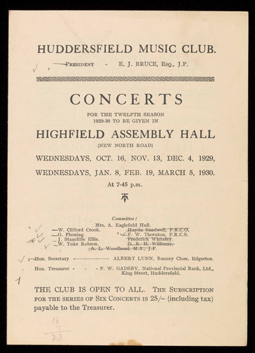 1 The Huddersfield Music Society, HMS 12, Page 1 |