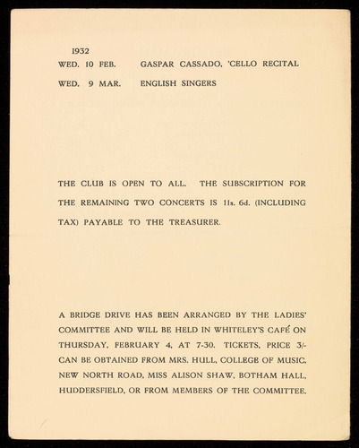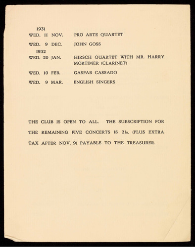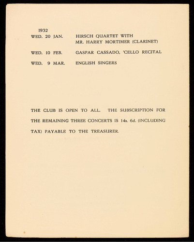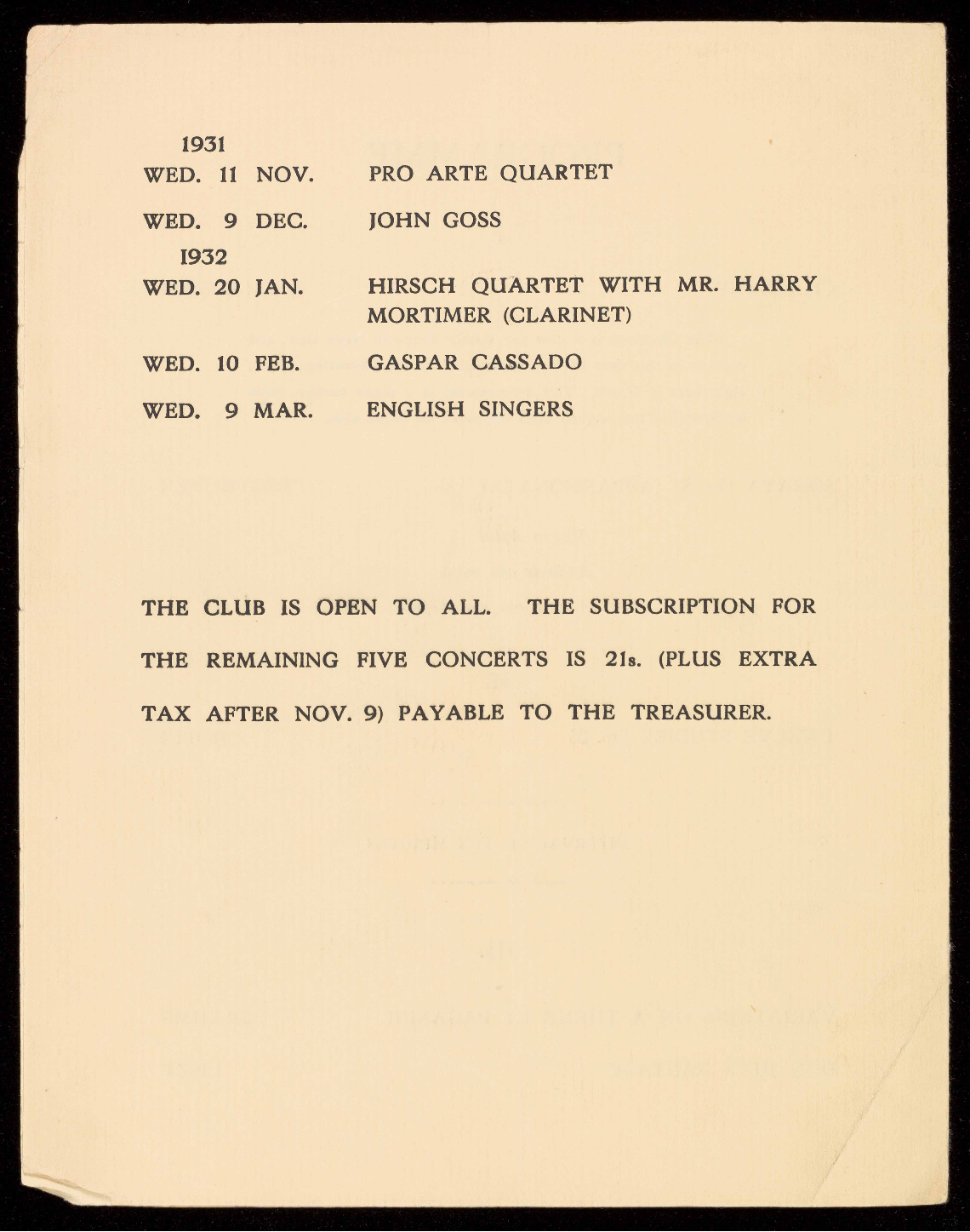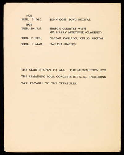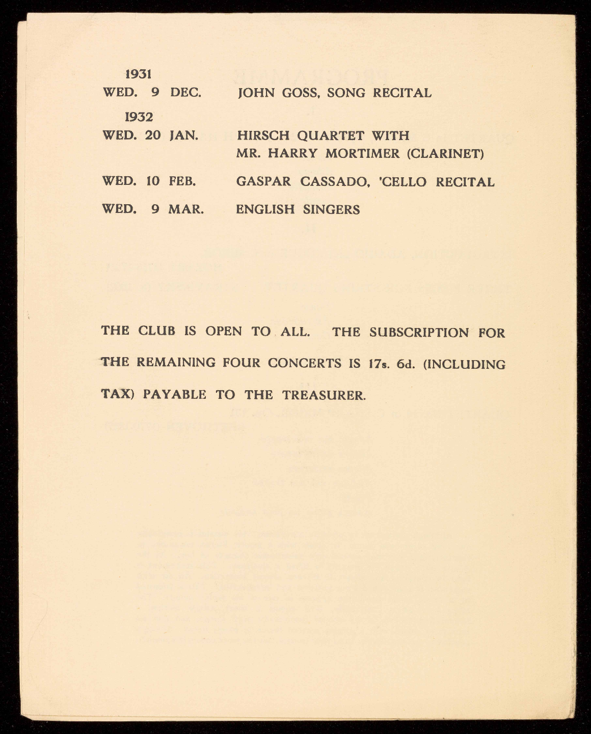 THE REMAINING CONCERT IS 5s. 9d. (INCLUDING TAX)