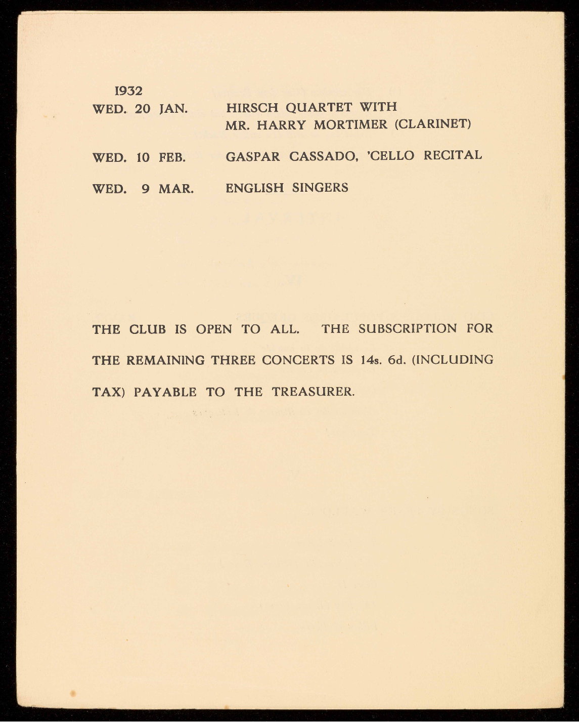 THE REMAINING FIVE CONCERTS IS 21s. (PLUS EXTRA