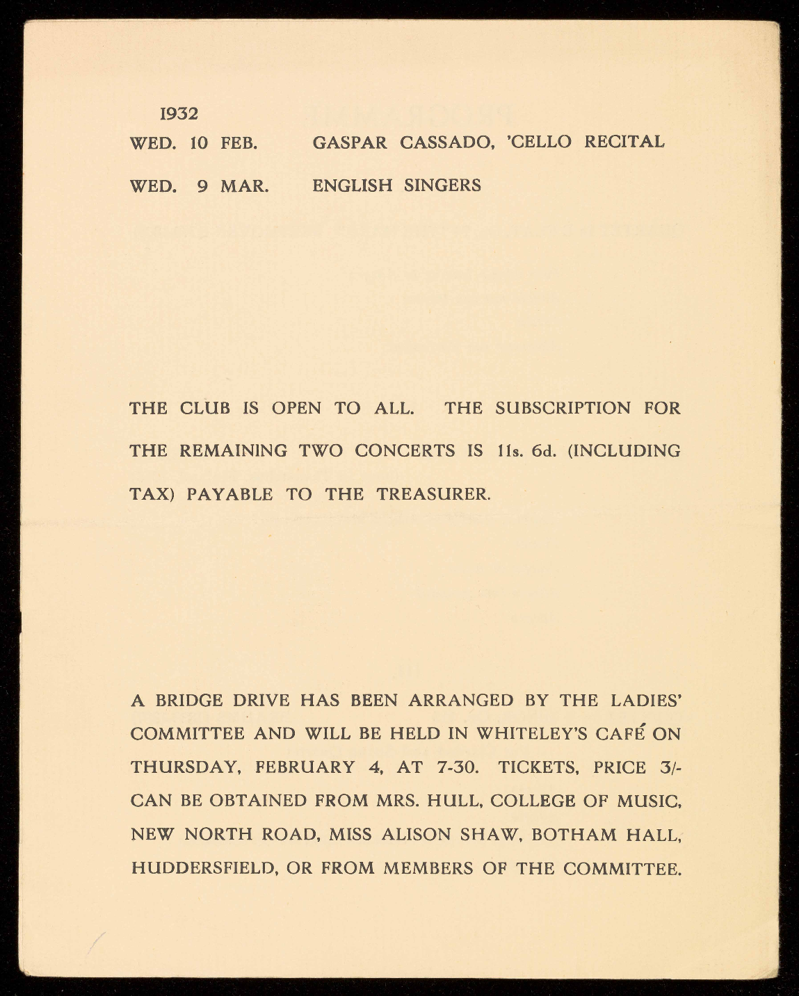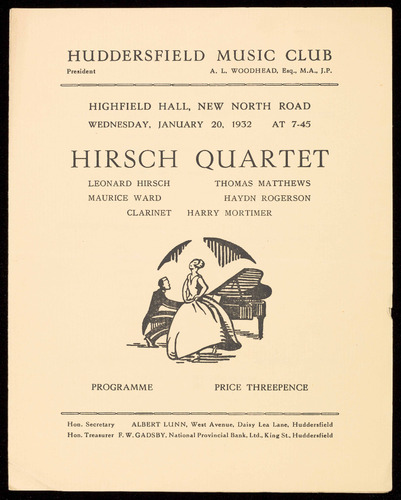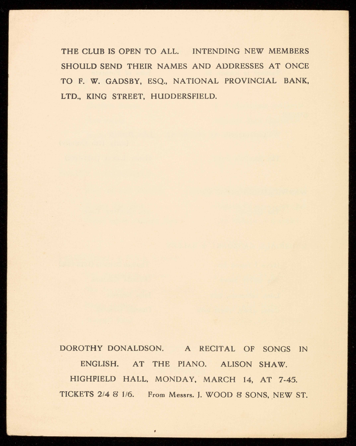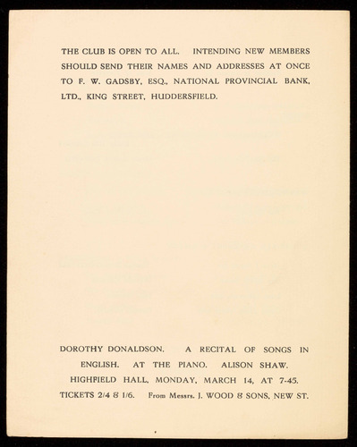 Hon. Treasurer F. W. GADSBY, National Provincial Bank, Ltd., King St., Huddersfield