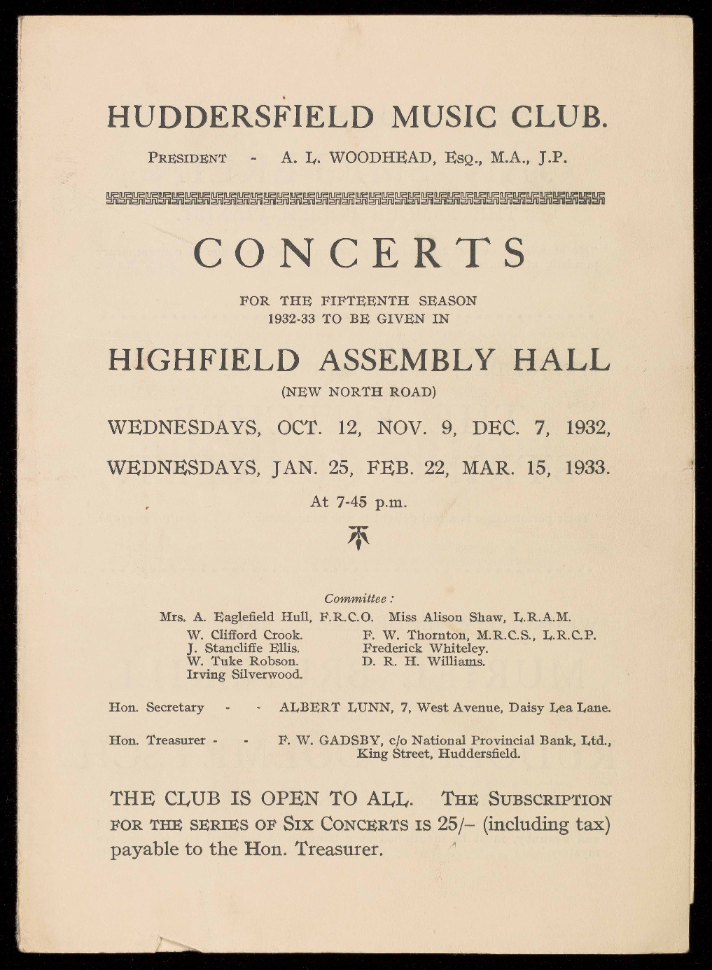 1 The Huddersfield Music Society, HMS 15, Page 1 |