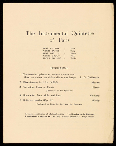 A unique combination of admirable artists. "In listening to the Quintette I