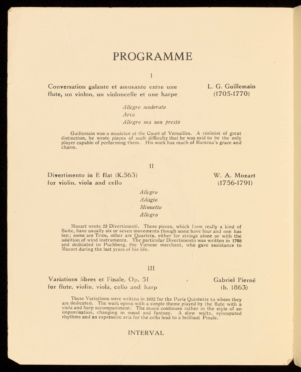 (FLUTE, HARP, VIOLIN, VIOLA and 'CELLO).