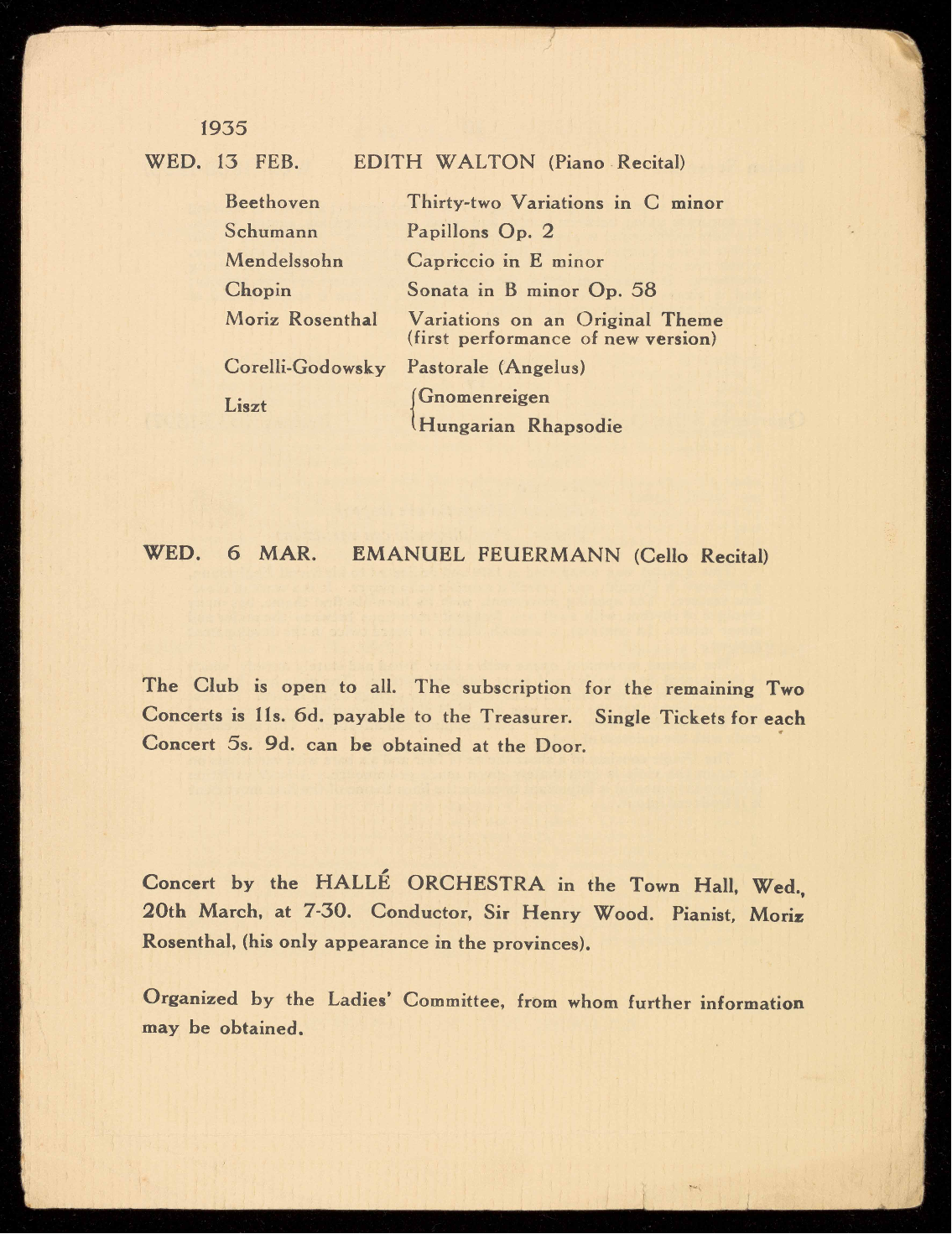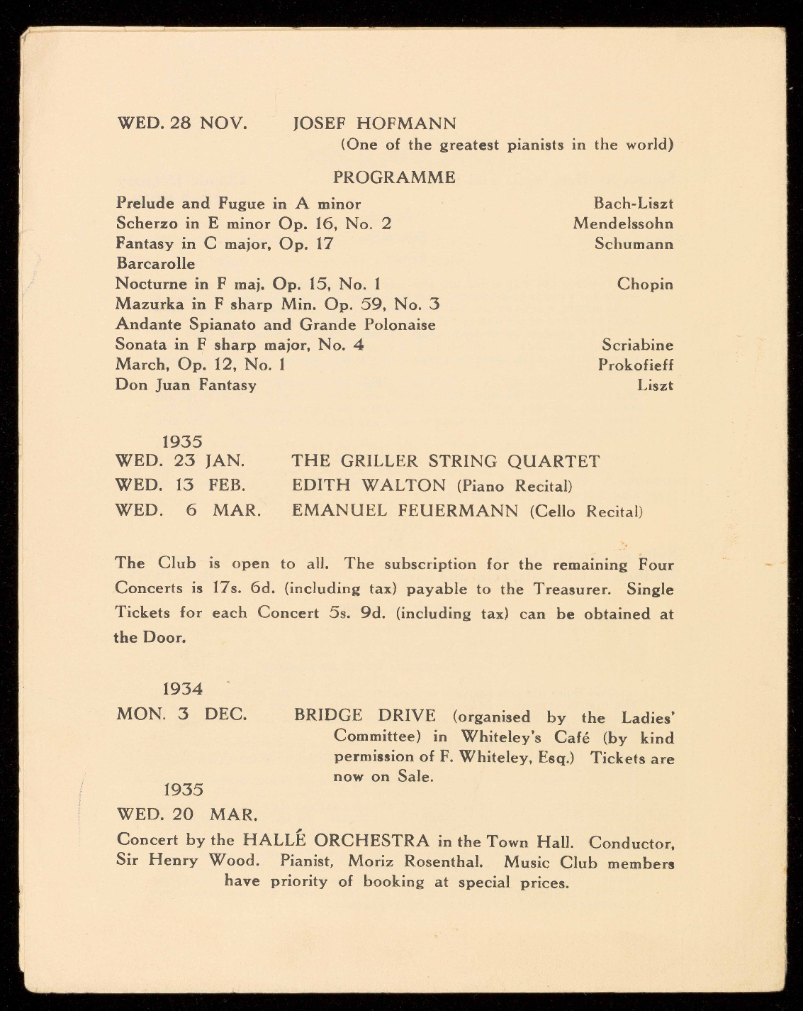 scriptions for the Season 1935-6 reduced