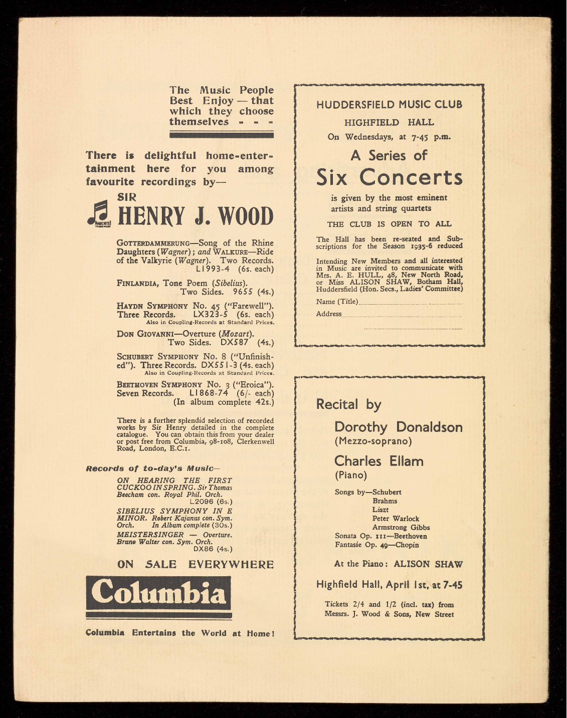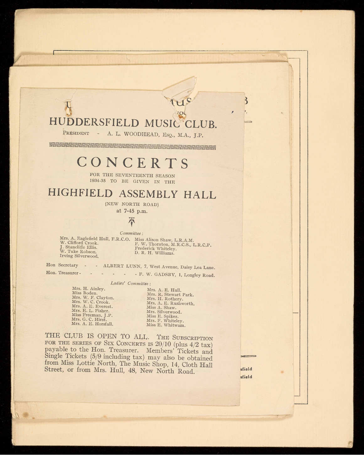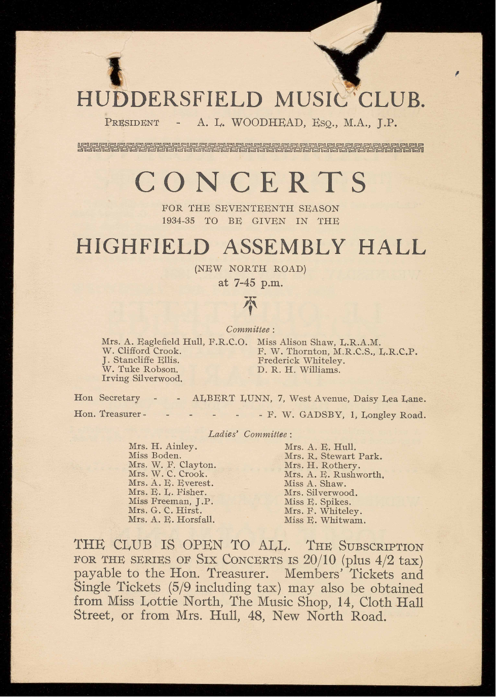 HUDDERSFIELD MUSIC CLUB.