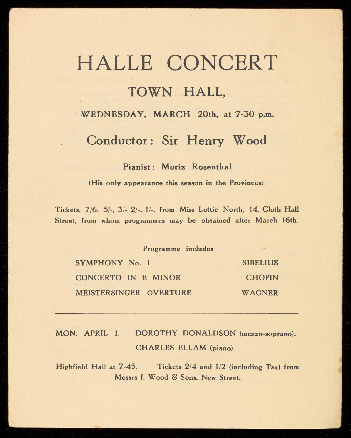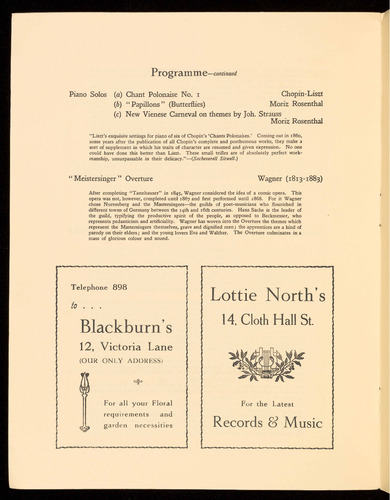 from Miss Lottie North, The Music Shop, 14, Cloth Hall