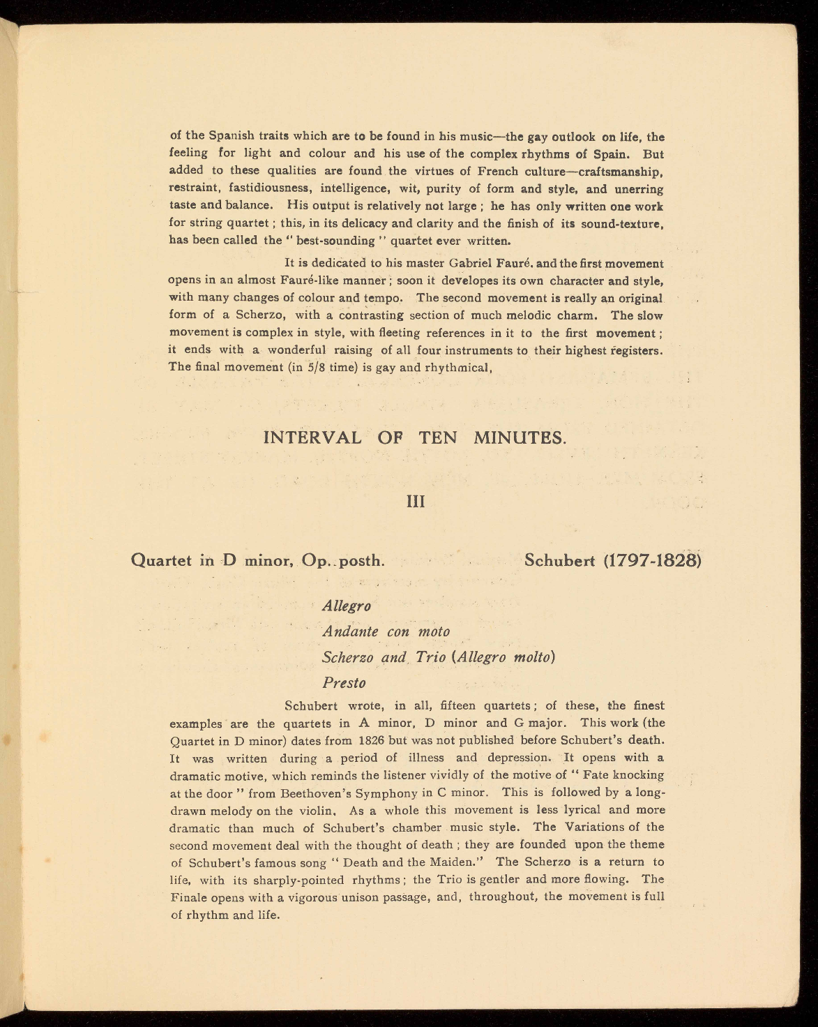the Kolisch Quartet. The work itself, is Schubert in