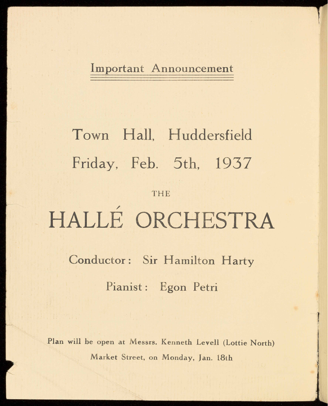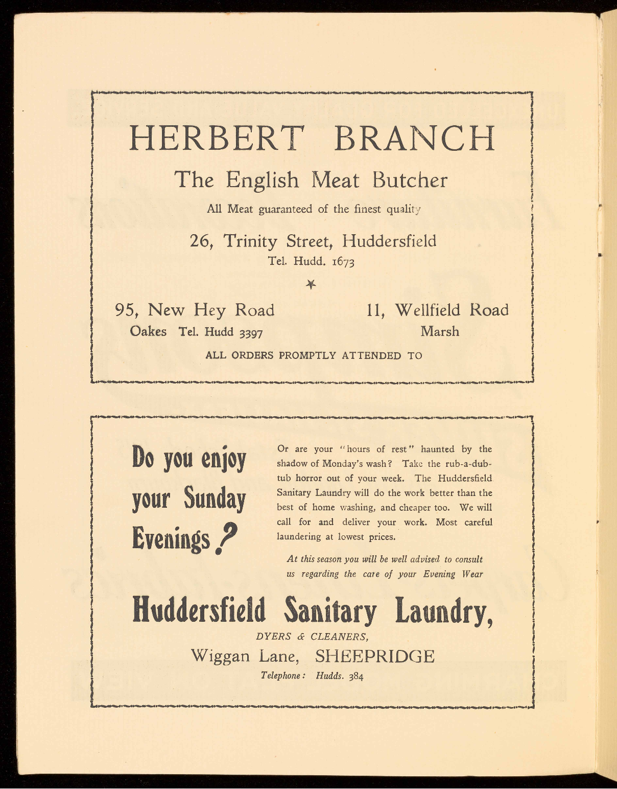 * Leave Huddersfield 12 p.m., 11th May.